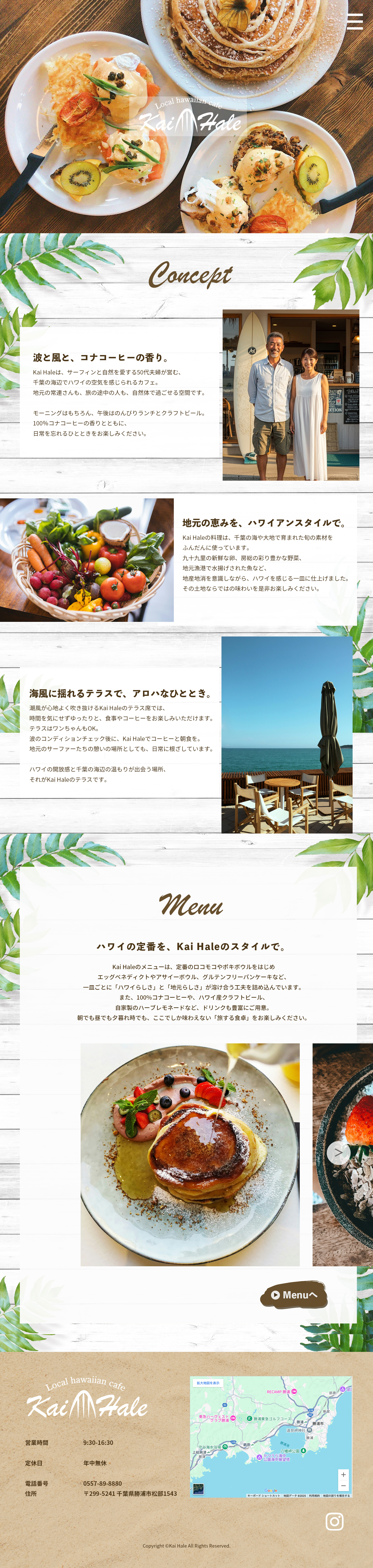 ・トップに彩り豊かな料理とロゴを配置し、ハワイの風と食の楽しさを一目で伝えるデザインに。