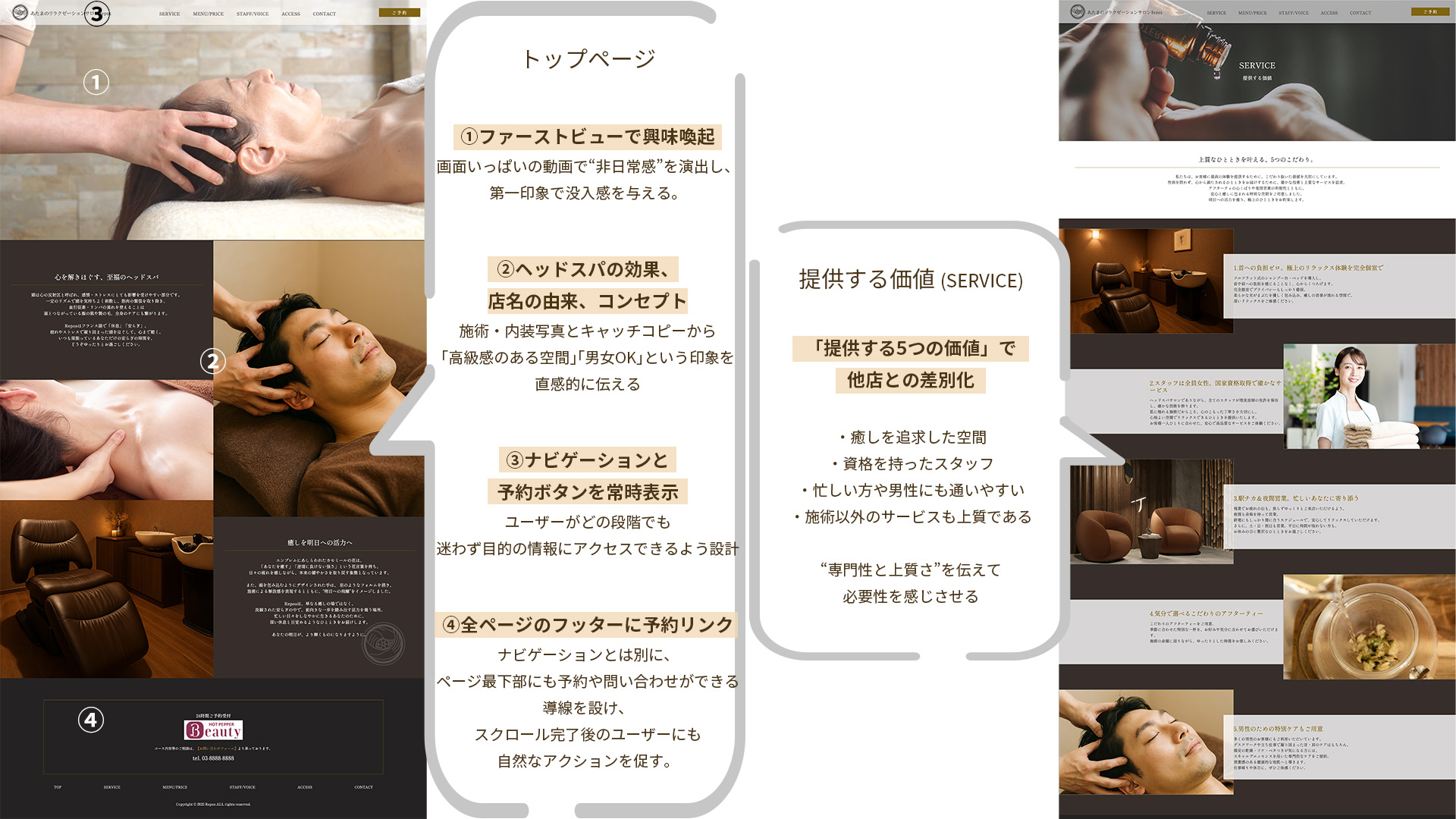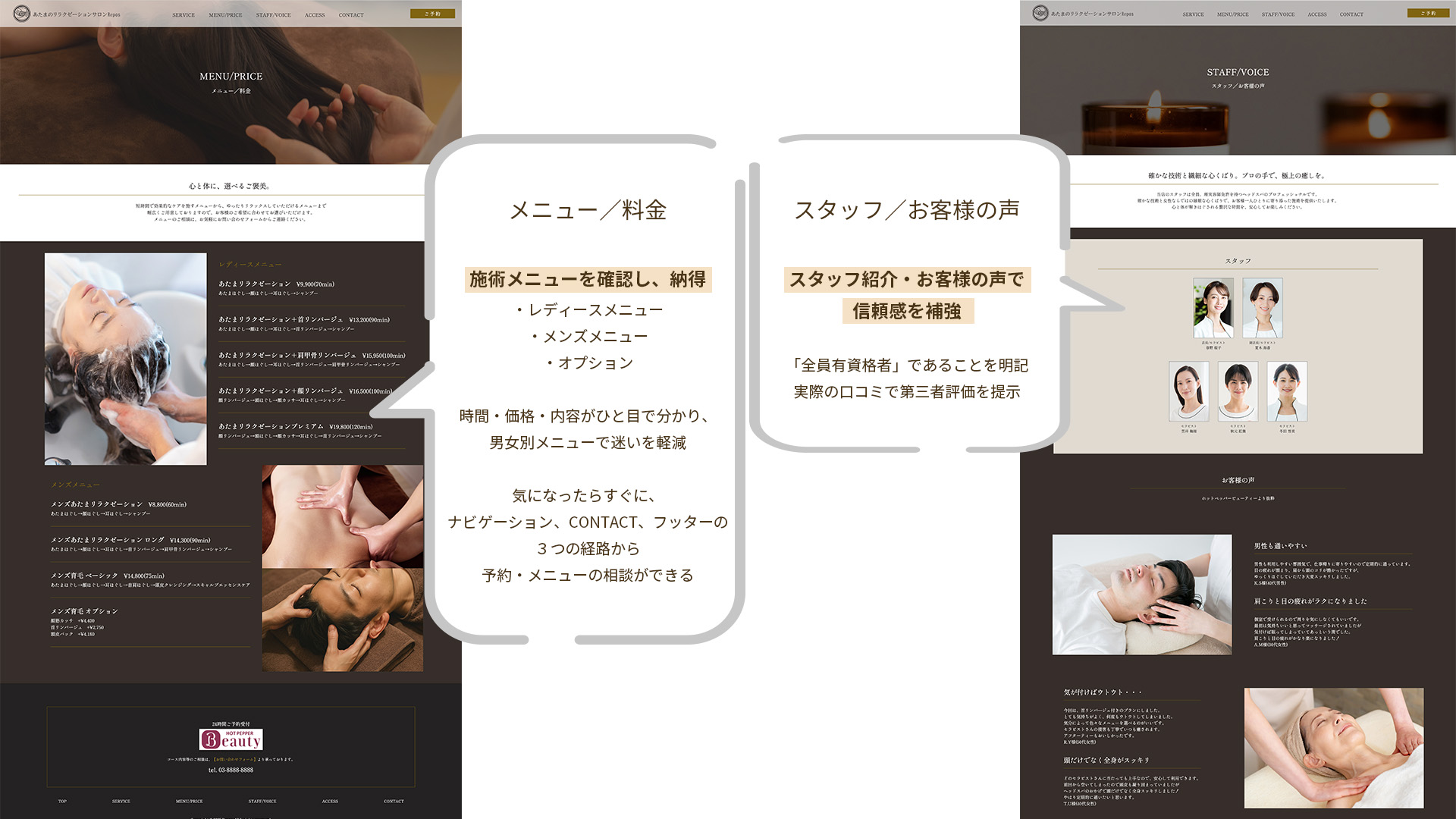 ・ファーストビューや導線設計により、ターゲットが「自分に合ったサロンだ」と感じやすくなり、離脱率の低下や予約率の向上が期待できます。