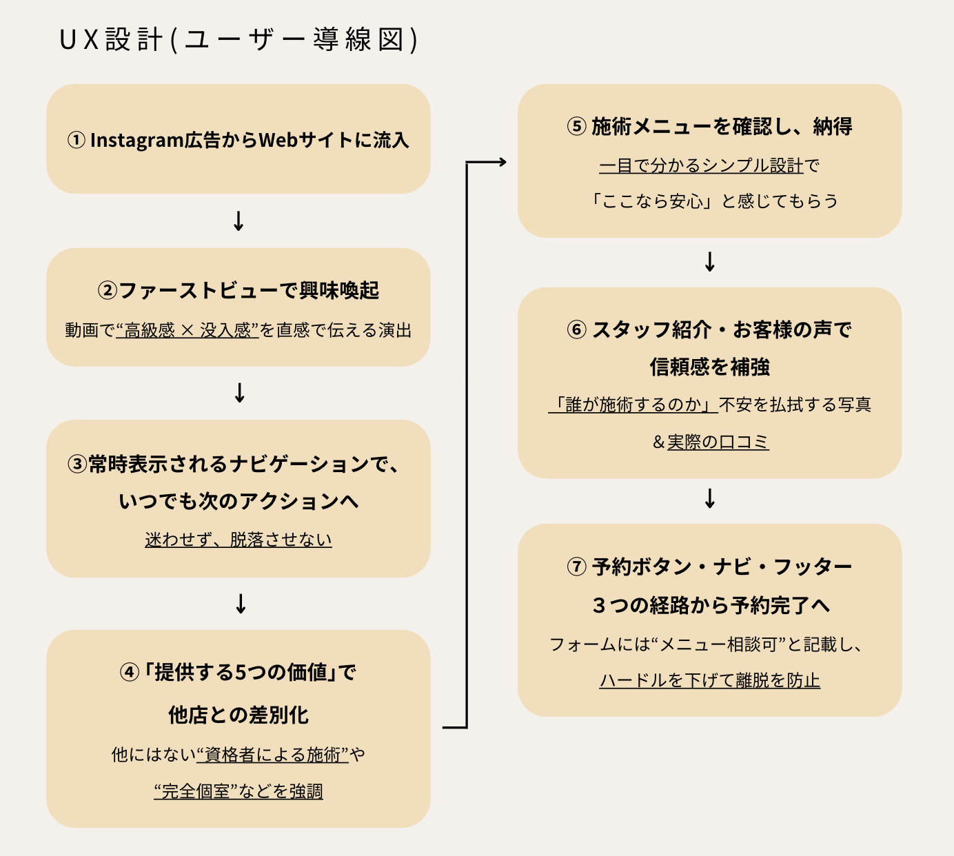 上記の課題を解決し、自然に予約完了まで進める導線を設計しました。